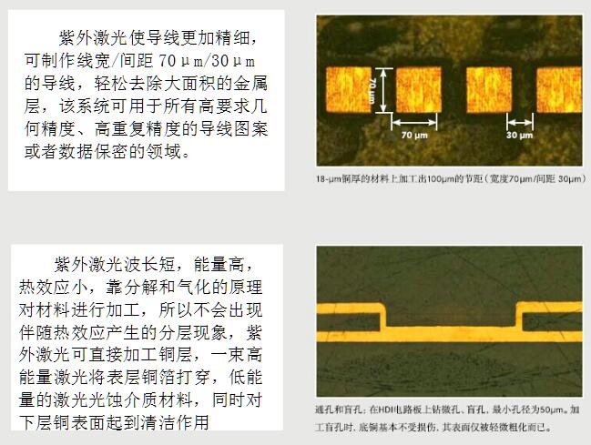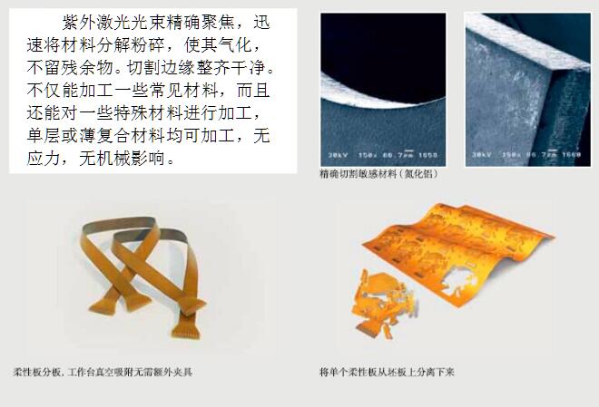 快速拼板生產的PCB分割成獨立電路板,加工LTCC,加工半固化片,在FR4上鉆孔、鉆微孔、激光直接成型電路圖形等。紫外激光與其他加工方式或其他激光相比,切割邊緣更整齊,外形尺寸精度更高產品加工模式無間隙切換,只需點擊軟件菜單導入新加工項目即可。